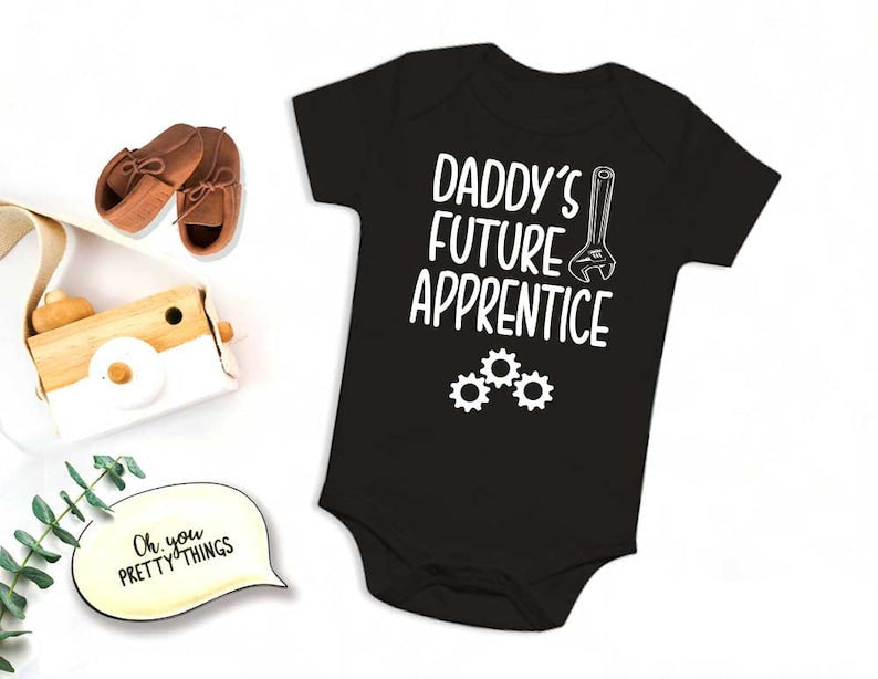 Daddy's Future Apprentice Mechanic Engineer Baby Bodysuit, Plumbing Baby Outfit pregnancy gift