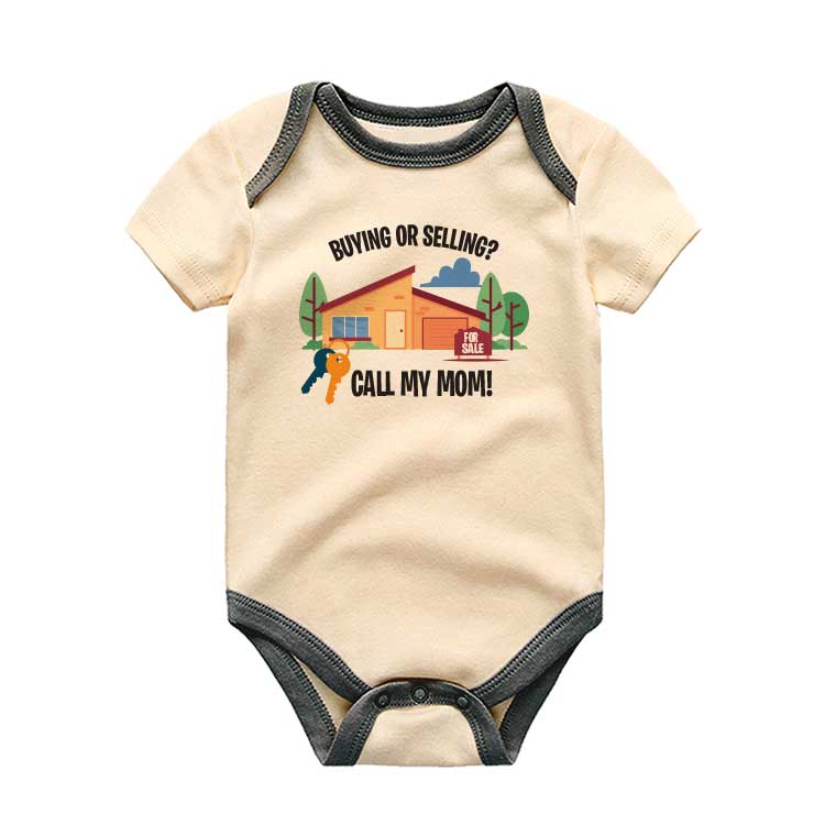 Get your little one ready for the real estate world with this adorable "Call my Mom" baby bodysuit. Made for future property agents, this cute outfit is perfect for babies of real estate moms or dads. With its real estate themed design, it's also a great baby shower gift for real estate agents. Buy or sell, your little one will be dressed for success.