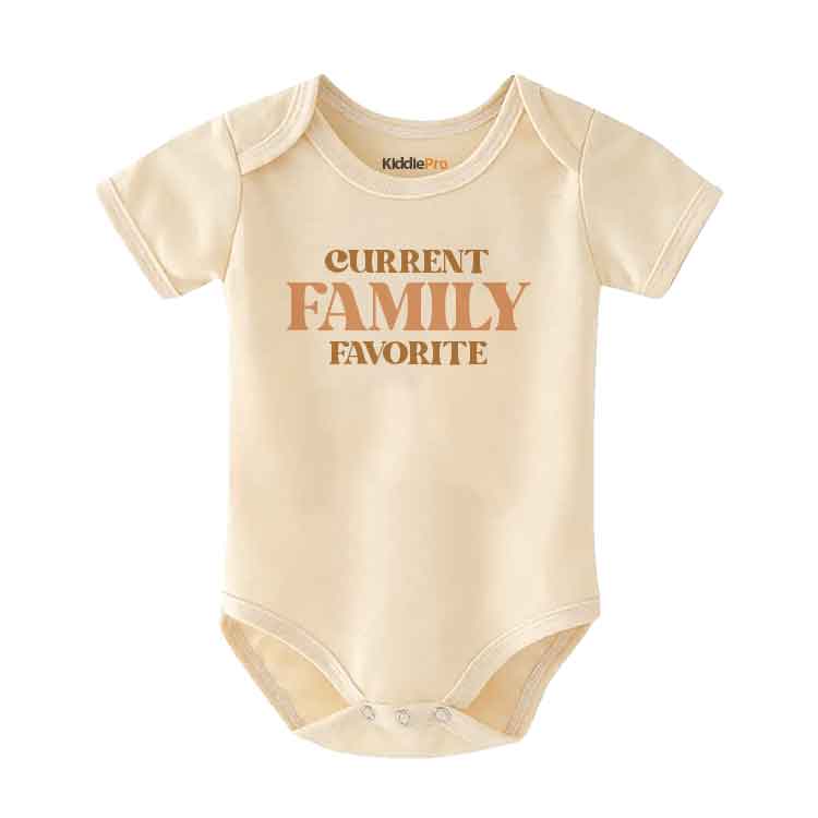 Welcome the newest addition to your family with our Current Family Favorite Baby Bodysuit! This adorable onesie is loved by everyone, especially grandma and grandpa. Whether this little one is the newest member or youngest sibling, they'll be sure to steal hearts in this cute and comfortable outfit.