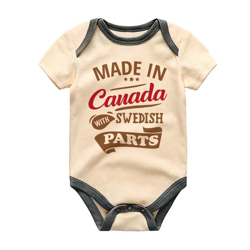 Keywords : Custom Sports Themed Half Canadian Swedish Roots Dual Heritage Multicultural Canada Day Funny Baby Outfit Personalized Custom Name Babygrow Unisex Baby Shower Clothing with sayings Bodysuit Jumpsuit Sleepwear Romper Creeper Growsuit Newborn Infant Boy Girl Pregnancy Reveal Announcement Gift