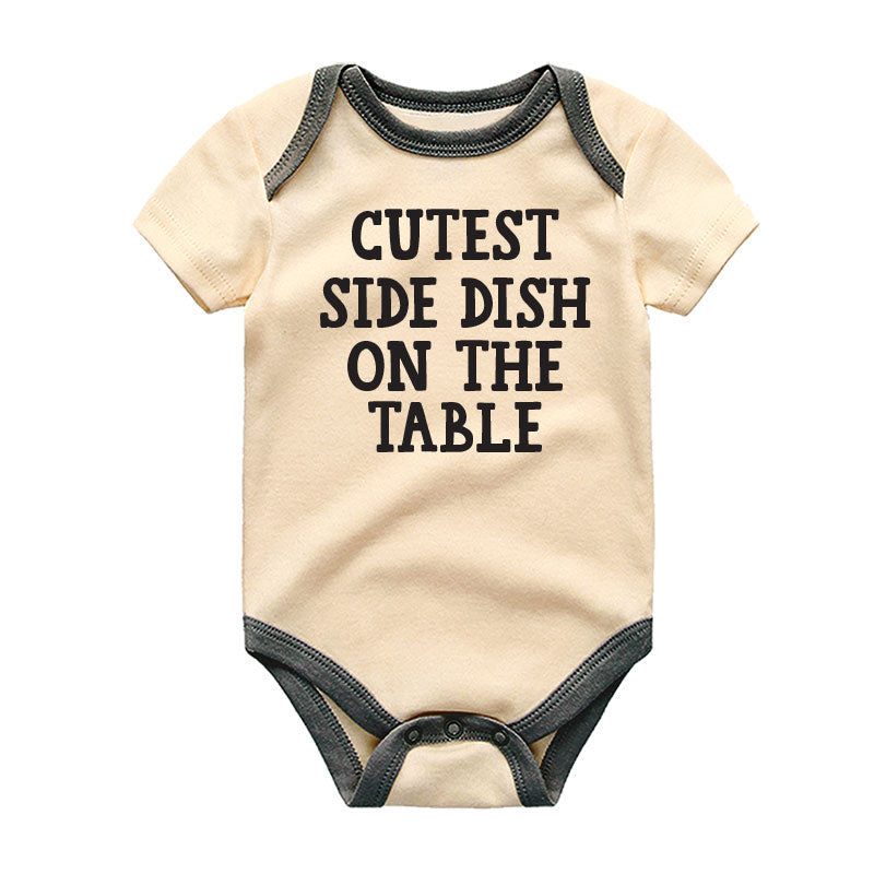 Cutest Side Dish on the Table Baby Bodysuit – This adorable and humorous baby bodysuit is the perfect newborn gift for any little one who loves to steal the spotlight! Featuring the playful saying, Cutest Side Dish on the Table, it’s a fun and memorable gift for baby showers, birthdays, or welcome-home celebrations. Crafted from soft, breathable fabric, this custom baby bodysuit ensures comfort while adding a touch of charm to your baby’s wardrobe. Ideal for baby boys and girls, this newborn outfit is machine washable and designed for easy wear. A must-have for any little one who’s the cutest addition to the family and a great choice for custom baby clothes and unique baby gifts!
