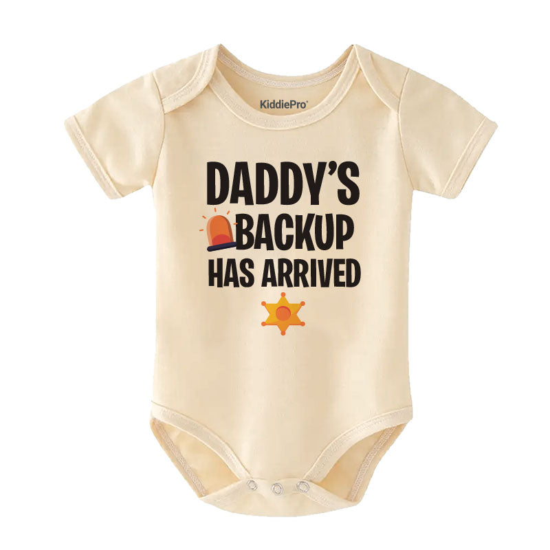 Show off pride and love for law enforcement with this adorable “Daddy’s Back Up Has Arrived” baby bodysuit featuring a fun police theme. Perfect for newborns and infants, this soft cotton onesie keeps your baby comfortable while celebrating dad’s important role. Whether you’re shopping for a police family baby shower gift, a newborn coming home outfit, or an everyday look that makes a statement, this bodysuit is the perfect choice. Designed with easy snap closures for quick diaper changes and durable stitching for daily wear, it’s both practical and stylish. Canadian families looking for police-themed baby clothes, funny baby outfits, or unique newborn gifts will love this meaningful and heartwarming design. A must-have keepsake for families proud to support dad in uniform.