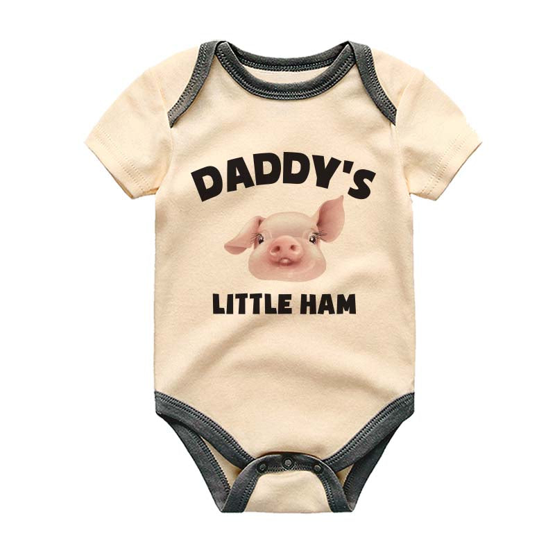 The "Daddy's Little Ham" onesie, featuring an adorable pig face design, is a playful and charming addition to your baby's wardrobe. Made from soft, comfortable fabric, this onesie is perfect for keeping your little one cozy while showcasing their fun personality. The cute pig face adds a touch of humor and sweetness, making it an ideal outfit for everyday wear, photo shoots, or family gatherings. Whether you're looking for a unique baby shower gift or a special outfit to celebrate the bond between dad and baby, this "Daddy's Little Ham" onesie is sure to bring smiles and create precious memories.