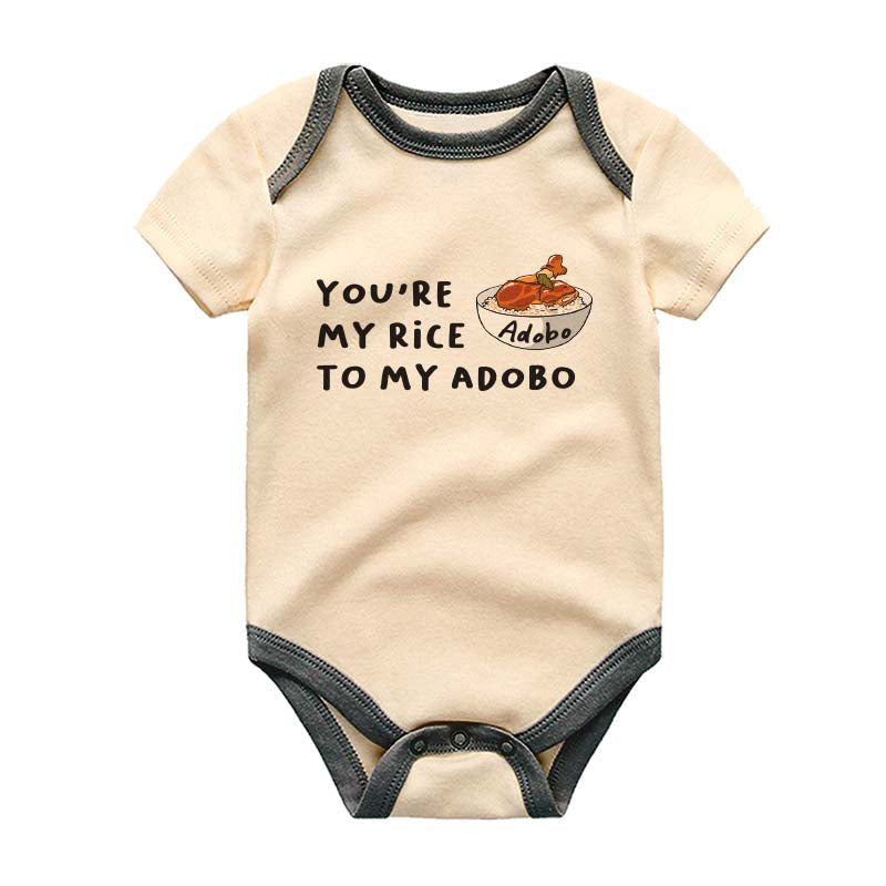 Keywords : Filipino, Pinoy, baby clothes, unisex, infant clothing, food pun, bodysuit, custom shirt, heritage, culinary traditions, outfit, rice, chicken, pork adobo, humor, Filipino cuisine, baby fashion, cultural pride, soft fabric, unique design