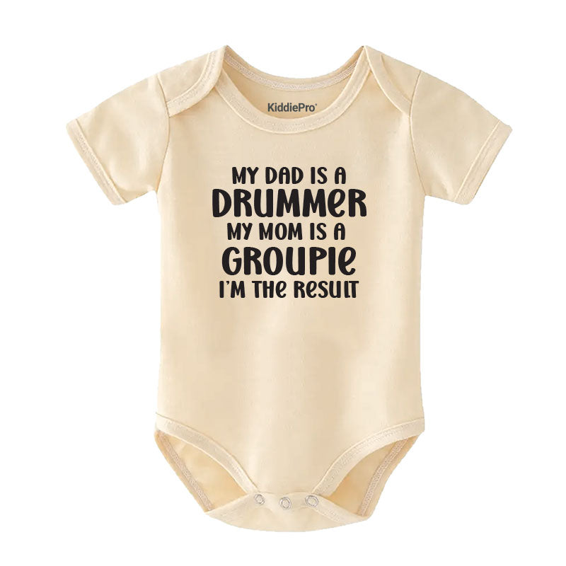 Let your little rock star make a grand entrance with this hilarious “My Dad is a Drummer, My Mom is a Groupie, I’m the Result” baby bodysuit. Made from super-soft, breathable cotton, it keeps your baby comfy while turning heads and getting laughs. Perfect for music-loving families, band rehearsals, concert nights, or as a one-of-a-kind baby shower gift. Available in multiple sizes and colors.