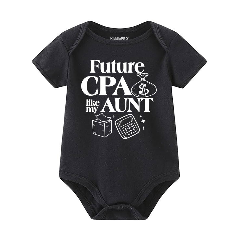 This adorable Future CPA like my Aunt Bodysuit is made from 100% cotton and is machine washable, making it easy to care. Crafted with love, this adorable outfit is the perfect way to share your joyous news with family and friends. Made from high-quality materials, it promises comfort and durability for your precious bundle of joy. Embrace the magic of new beginnings with this thoughtful gift that will be cherished for years to come. This bodysuit is designed and created by a mom who is passionate in creating playful, cute, and trendy design. 100% handmade with love and care for your little one!