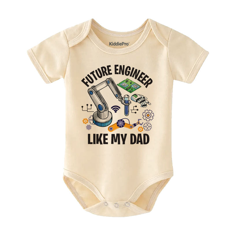 Inspire big dreams early with this adorable “Future Engineer Like My Dad” baby bodysuit. Made from soft, breathable cotton, it’s gentle on baby’s skin and perfect for everyday wear. Ideal for engineer dads, STEM-loving families, and future problem-solvers in the making. A thoughtful and unique baby shower gift for proud engineer parents.