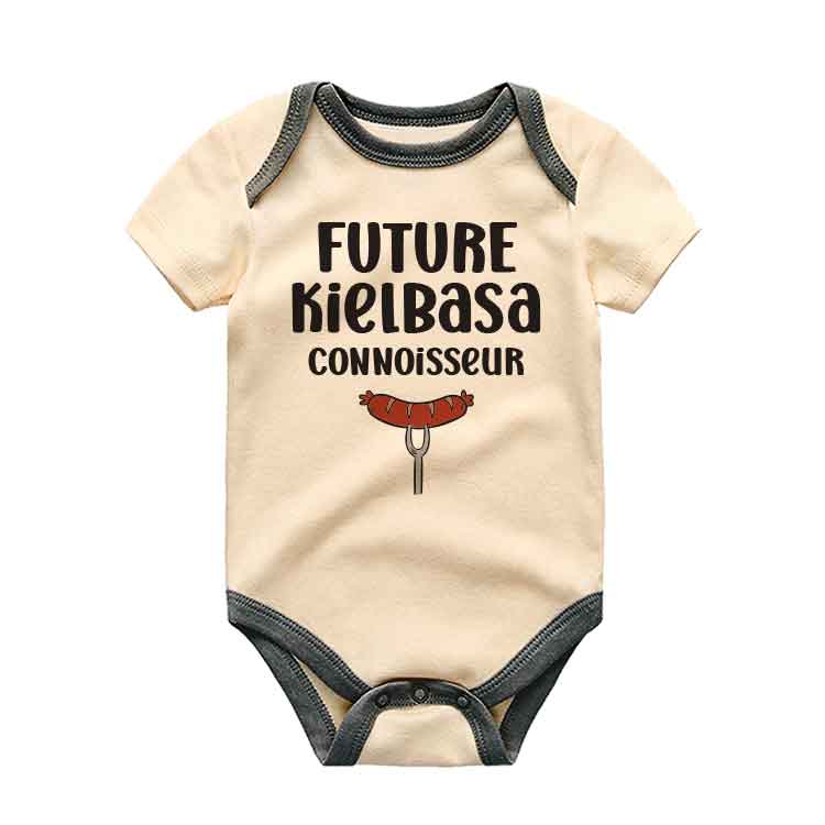 Dress your little food lover in this adorable Future Kielbasa Baby Bodysuit. With a fun food pun and playful humor, this Polish Sausage outfit is perfect for any Polish baby. Made from high-quality material, it's comfortable and stylish. A must-have for all future foodies.