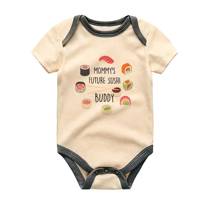 Celebrate your little one's love for sushi with this adorable "Mommy's Future Sushi Buddy" baby outfit! Featuring a playful food pun, this personalized bodysuit is perfect for sushi enthusiasts and makes a unique addition to any baby’s wardrobe. The unisex design and customizable name option make it ideal for both baby boys and girls. Crafted for comfort, this versatile outfit serves as a bodysuit, jumpsuit, sleepwear, and romper, making it a fantastic choice for everyday wear or as a memorable baby shower gift. It’s also great for pregnancy reveal announcements and adds a fun touch to any occasion.. This baby bodysuit is machine washable, making it easy to care for. The romper is super soft and easy to wear and take off, with a snap closure. This bodysuit is designed and created by a mom who is passionate in creating playful, cute, and trendy design. 100% handmade with love and care for your little one!
