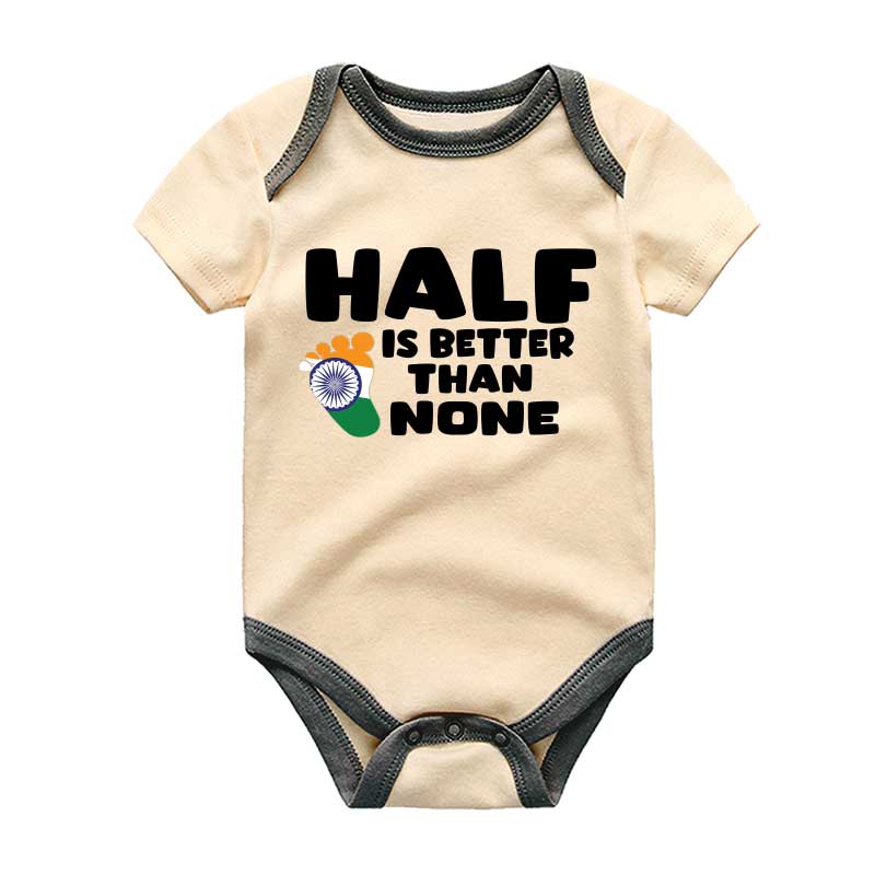 Show off your little one's Indian heritage with this hilarious and unique baby bodysuit! Featuring a playful blend of Indian-themed design and tongue-in-cheek humor, this romper is the perfect gift for Indian parents. With a touch of cultural flair, your baby will be the talk of the town in this one-of-a-kind outfit. (Warning: excessive cuteness may cause uncontrollable laughter!)