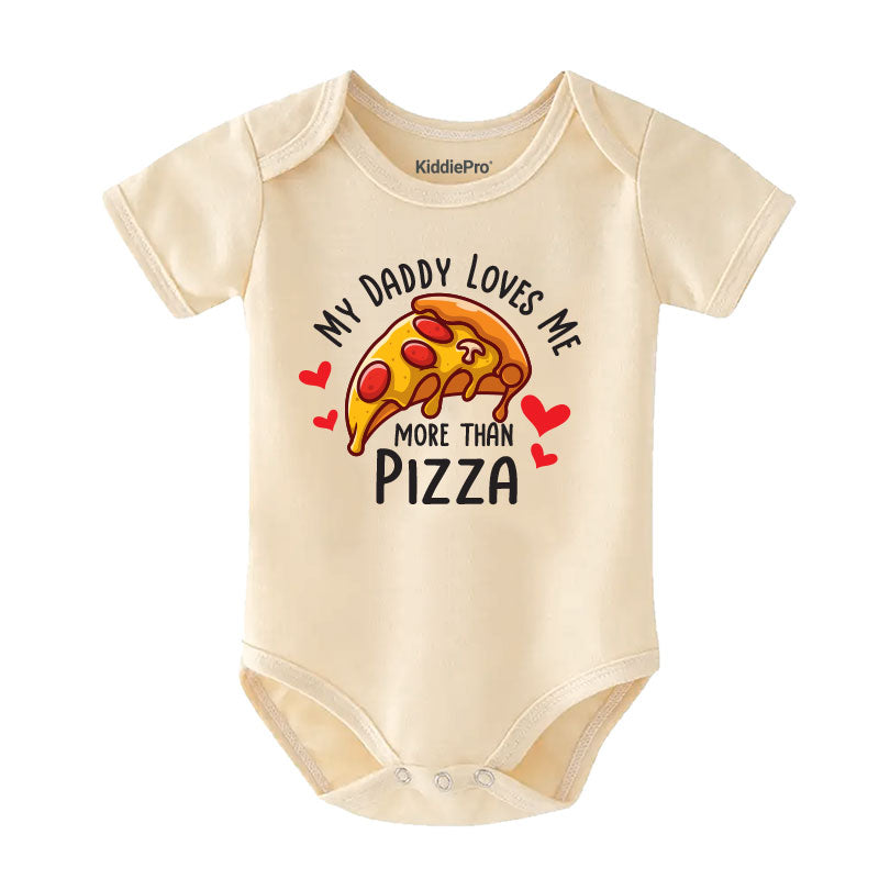 Add a slice of fun to your baby’s wardrobe with this adorable “My Daddy Loves Me More Than Pizza” baby bodysuit. Designed for comfort and laughter, this outfit makes a perfect gift for dads who love their little one just as much as their favorite food. Crafted from soft, breathable fabric, it’s gentle on baby’s skin and easy to wear for playtime, family outings, or cuddles at home. A playful and unique choice for Father’s Day, baby announcements, birthdays, or everyday wear, this bodysuit is sure to bring smiles to dad, baby, and everyone around.