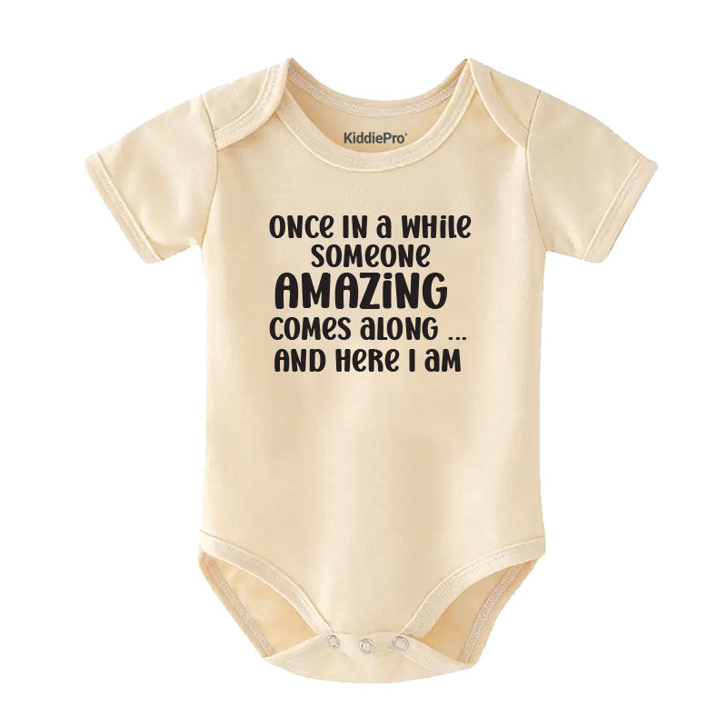 Celebrate the arrival of someone truly special! This “Once in a while someone amazing comes along” baby bodysuit is a sweet and heartfelt outfit for newborns. Perfect as a baby shower gift, coming-home outfit, or everyday wear, it’s designed to bring smiles and warmth. Made from soft, breathable cotton, this bodysuit is gentle on baby’s skin, comfy for all-day wear, and easy to wash. A touching way to honor the little miracle in your life.