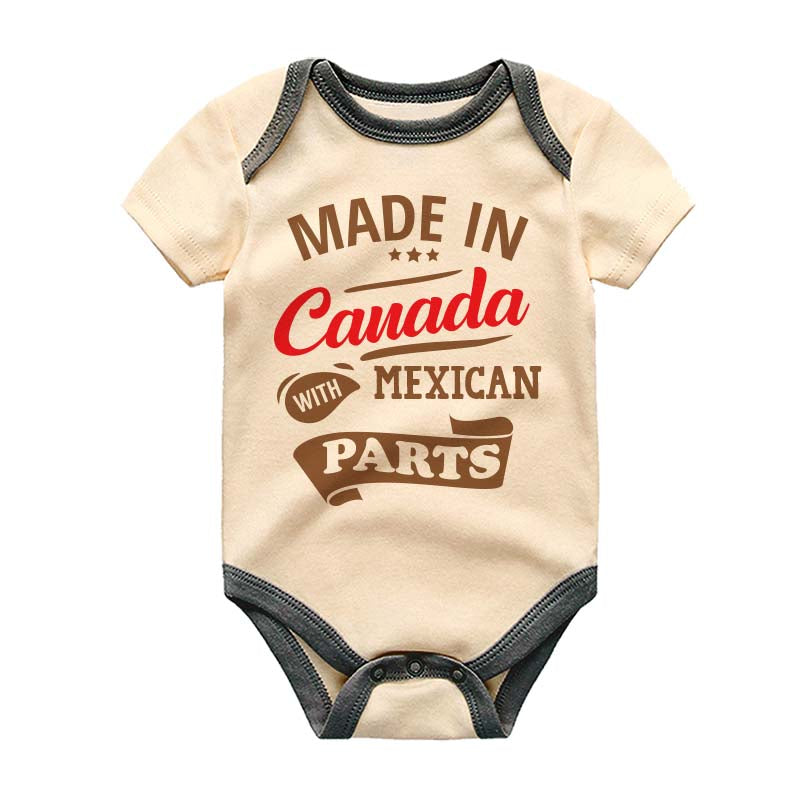 Celebrate your little one's unique heritage with our "Made in Canada with Mexican Parts" bodysuit! This cute and funny baby outfit is perfect for showcasing their mixed heritage. Made from soft, high-quality cotton, this custom unisex baby clothing ensures comfort and style. Ideal for pregnancy reveals, baby showers, or everyday wear, it’s a delightful way to honor both Canadian and Mexican roots. This adorable and trendy baby bodysuit is a must-have for any half Canadian baby! This baby bodysuit is machine washable, making it easy to care for. The romper is super soft and easy to wear and take off, with a snap closure. This bodysuit is designed and created by a mom who is passionate in creating playful, cute, and trendy design. 100% handmade with love and care for your little one!