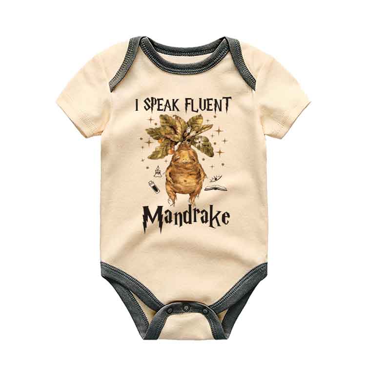 Enhance your baby's wardrobe with this adorable Mandrake bodysuit. Perfect for little wizards and magic lovers, this outfit is both comfortable and stylish. Made with high-quality materials, it's sure to keep your baby cozy while showcasing their fluent skills in Mandrake. A must-have for any fantasy or magical-themed event!