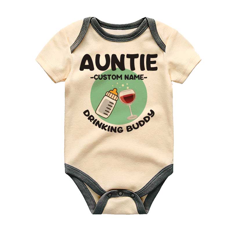 Introducing our Personalized Name Baby Clothing - the perfect gift for the Auntie in your life! This playful baby clothes features a custom name and "Drinking Buddy" design, adding a unique and quirky touch to a classic baby gift. Give Auntie a reason to smile with this customizable and fun present!