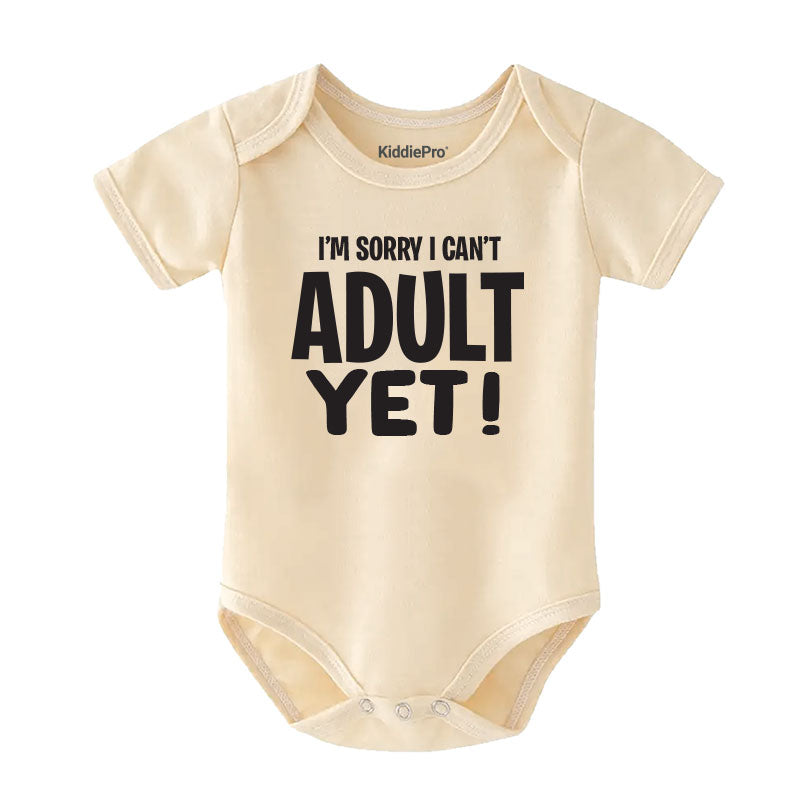 Get ready to turn heads and spark smiles with this adorable "Sorry I Can’t Adult Yet" baby bodysuit. Perfect for newborns and infants, this funny little outfit is a playful take on grown-up life, making it an instant favourite for baby showers or everyday wear. Crafted from soft, breathable cotton, it's as comfy as it is cute — gentle on delicate skin and easy to wash, because parenting is hard enough. Whether you’re celebrating a new arrival or just want to add some humour to your baby’s wardrobe, this charming piece is a must-have. Designed with love in Canada, it's a sweet blend of comfort, style, and personality for your tiniest human.